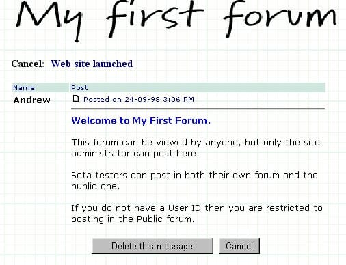 You are here: irt.org | Articles | Database | My First Forum - a bulletin board application [ previous next ]