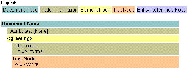 Here is the DOM tree created by DOMit on the document greeting.xml. See the section on XML Conformance Error Diagnostics in XML Conformance Services for more details.