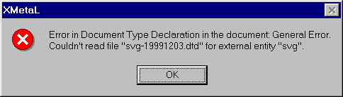 is a commercial XML editor with XML well-formedness and validation support. It provides three advanced views of the documents: an Enhanced Grid View for structured editing, a Source View with syntax-coloring for low-level work, and an integrated Browser View. Here is a sample XML Spy screenshot for a validation test for the document wwwc_logo.xml. See the section on XML Conformance Error Diagnostics in XML Authoring Environments for more details.XMetaL is a commercial SGML/XML editor with XML well-formedness and validation support. Among its various features, it support DTDs in ASCII and compiled form, three views of the document: Normal, Plain Text, and Tags On. Here is a sample XMetaL screenshot for a validation test for the document cgi.svg. See the section on XML Conformance Error Diagnostics in XML Authoring Environments for more details.